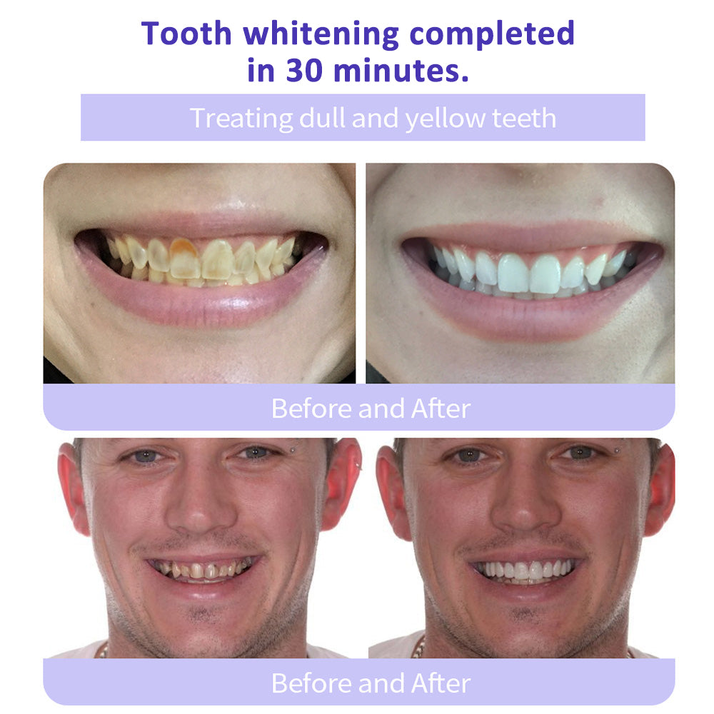 Tired of hiding your smile because of yellowish teeth? histone V36 Whitening Strips are here to change the game!Look at these amazing “before & after” shots—no hype, just real results. The purple - hued strips work their color - correcting magic, targeting those stubborn yellow tones to reveal a brighter, more confident smile.Whether it’s coffee stains or daily discoloration holding you back, our strips deliver visible whitening in just 30 minutes.