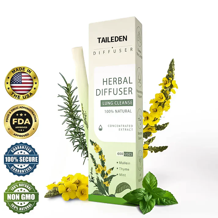 Mullein Aroma Diffuser uses a potent blend of herbal extracts like Mullein, Sea Moss, Loquat Leaf, Ginger Root, Lobelia, and Sophora Flavescens to detoxify, repair, and revitalize your lungs. It’s specially formulated to combat damage caused by smoking, pollution, and allergens, clearing mucus, soothing inflammation, and restoring healthy lung function.