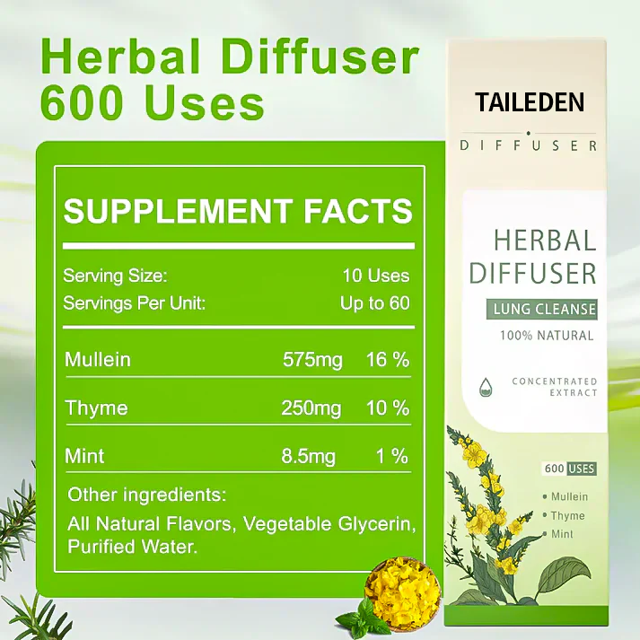 Each unit of Mullein Aroma Diffuser contains a concentrated dose of 20g mullein extract (50:1)—ensuring deep tissue penetration for effective detoxification. The powerful botanical blend works quickly to dissolve mucus, reduce inflammation, and regenerate damaged lung structures.